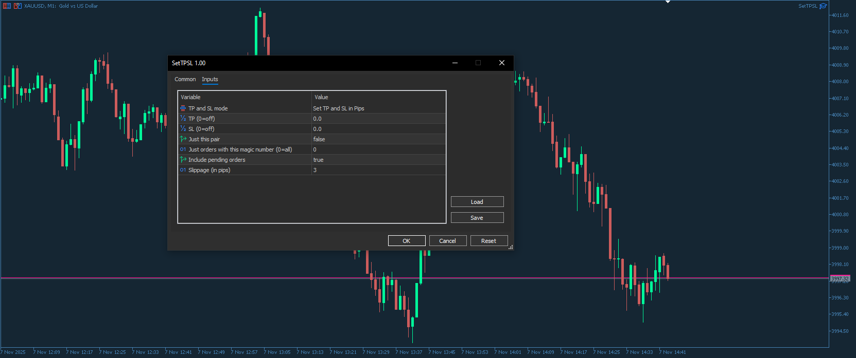📌 This simple yet powerful EA automatically sets Take Profit and Stop Loss levels for your open trades using one of three units of your choice: Pips, Points, or exact Currency (money) value.